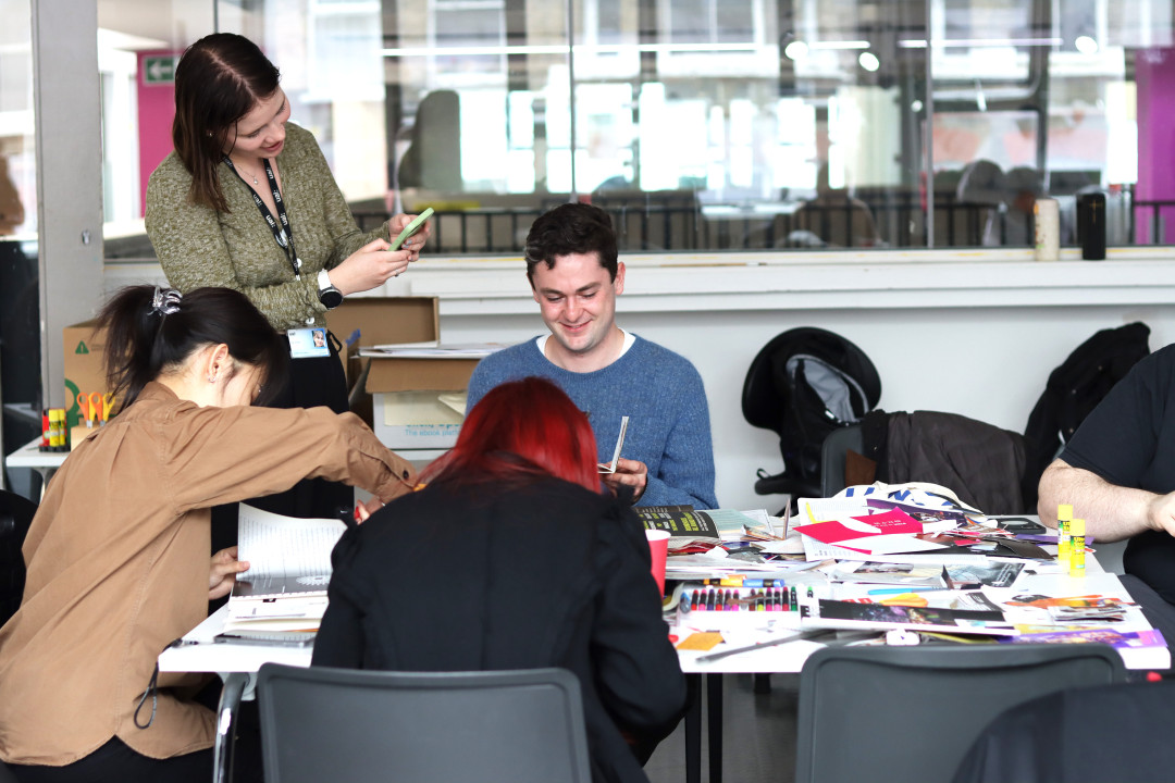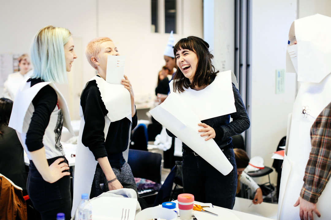 Emma Jemson making paper masks in the studio