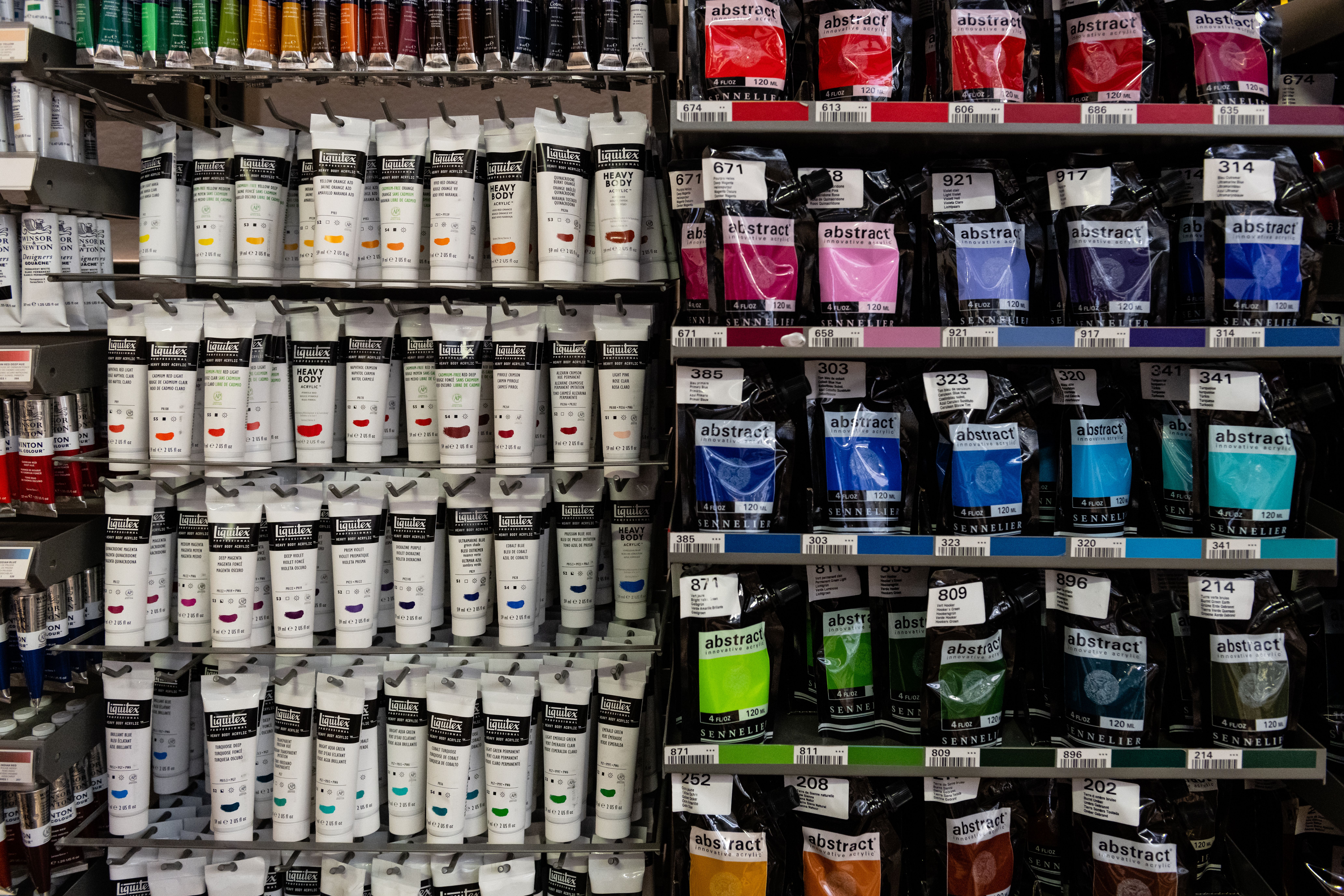 이 물감은 빠르게 건조 되고, 발색력과 접착성이 뛰어나 덧칠 작업에 용이합니다. 워낙 다루기 쉬운 이 물감은 붓 외 다른 도구와 도 함께 사용되기도 합니다.